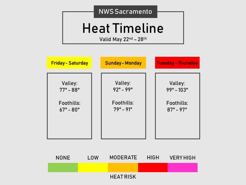 SACRAMENTO – As the first triple digit weather temperatures are amongst us, the US National Weather Service is issuing a heat watch for upcoming days.