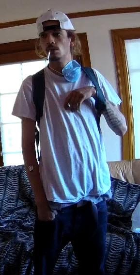 The suspects appears to be an adult Caucasian male and was wearing a white T-shirt, white baseball cap and a blue face mask.